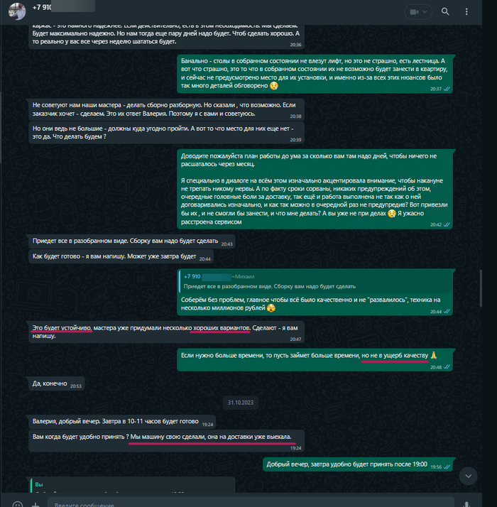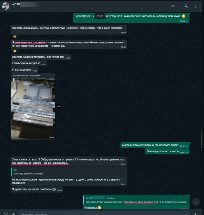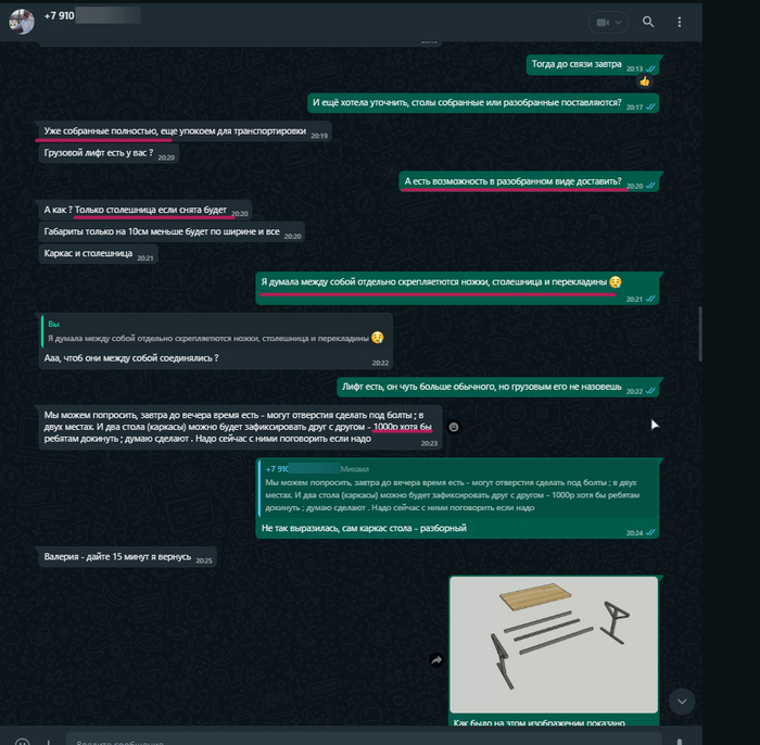 01.11. 18:40 Пишу Михаилу, а что там с доставкой? Обещали связаться, мне в 12 часов ночи как-то не очень хотелось бы со столами возиться. И понеслась..