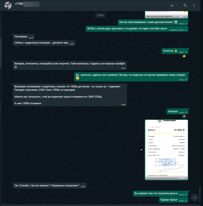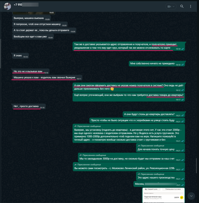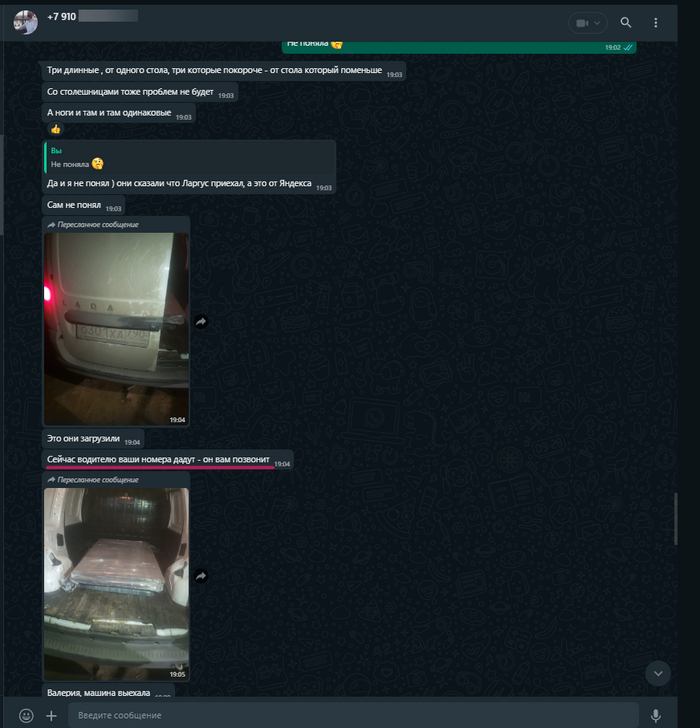 Курьер повторял как заговоренный переведите деньги, переведи деньги, я сказала что уже отправила, он звонил там непонятно кому, словно его друг расспрашивал о подробностях доставки и перевода денег. Вообще интересный нюанс, как средняя машина + 2 грузчика у яндекса вышла по тарифам 3100, а тут маленькая машина т.к столы разборные + 1 грузчик , вышла по цене дороже чем "фул комплектация" доставки?? Т.е мне еще своих 200р пришлось сверху докинуть, иначе я не понимаю. Выглядит как очередной лохотрон от MLOFT, что они попросили своего знакомого доставить заказ якобы он от Яндекса, и просто навариться на доставке сверху.