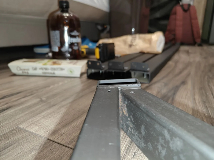 Самостоятельная сборка была бы возможна, но увы нету знакомых, у кого можно было бы воспользоваться мастерской для сварки каркаса или она бы в аренду находилась не так далеко, что тащиться по всей Москве с этими ножками.