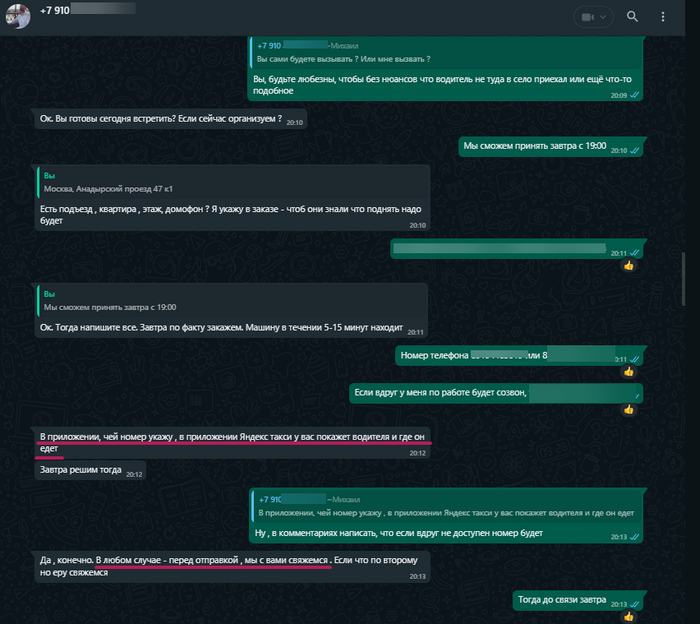 Выделила важные детали, что через доставка Яндекс Го, у получателя действительно отображается маршрут и примерное время прибытия водителя и Михаил с этим согласился. Так же уточнил, что перед доставкой со мной обязательно свяжутся. Где подвох спросите вы?