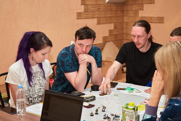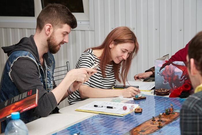 2) Конечно же, D&D. Но на этот раз, памятуя об отзывах участников, мы сделали не более одной 4-часовой сессии в день, что, как показала практика, стало идеальным решением и давало участникам больше свободного времени на другие активности или отдых. Про эпик на 7 столов мы тоже не забыли.