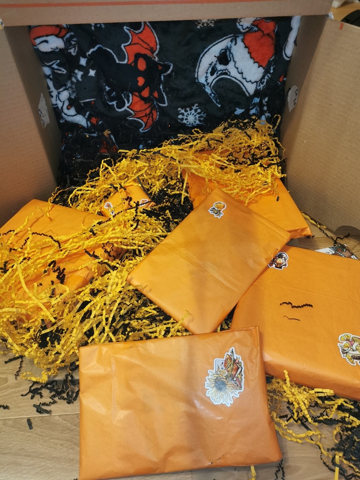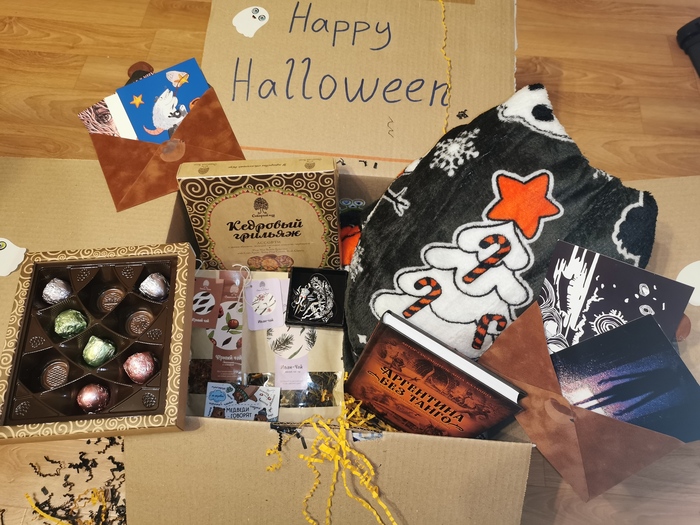 Общий вид подарка (плед завернут с намёком на предстоящий обмен). Честно сказать - совсем не ожидала такого, нет ТАКОГО подарка, это просто супер! Хочется и написать тысячу благодарностей, но боюсь, что это может сильно затянуться, ибо передать ВСЕ эмоции вкратце будет сложно!!! (Ну, вы и так, наверное, уже заметили, по длине поста 😆). Огромное спасибо тебе, дорогая Снегурочка (или всё же добрая Ведьмочка?)) @dzhana2, за это невероятное хеллоуинское волшебство!