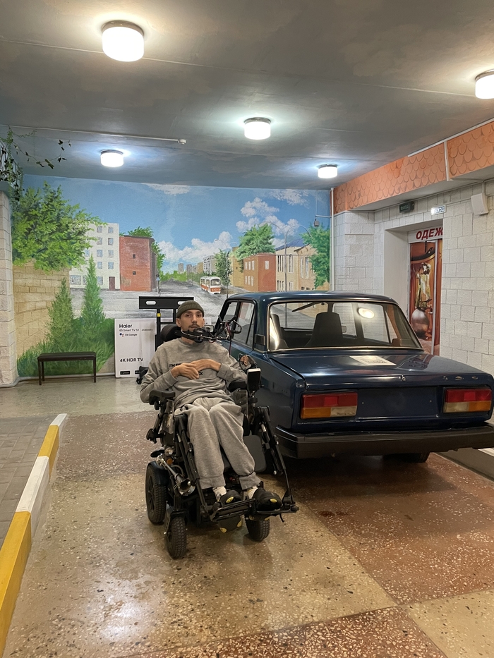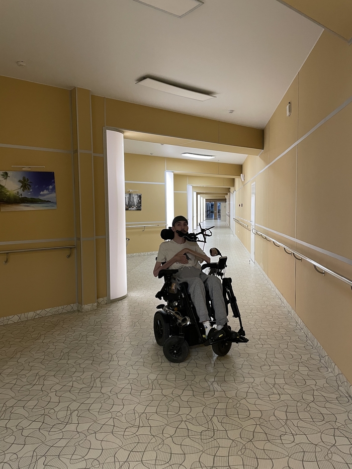 Здание хоть и выглядит печально, но это одно из немногих мест, где проектировщики и строители думали о том, кто будет пользоваться. За три недели я наездил там 38 километров. Для сравнения: за три года управления электрической коляской я накатал всего 150. Огромное пространство, в котором можно заехать абсолютно куда тебе угодно.