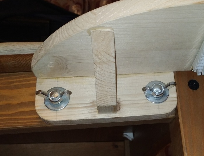 Рычаг имеет джва подпружиненных подшипника, которые упираются в деревянную раму. Преодолевая бугорки, подшипники дают надежную фиксацию рычага в крайних точках: