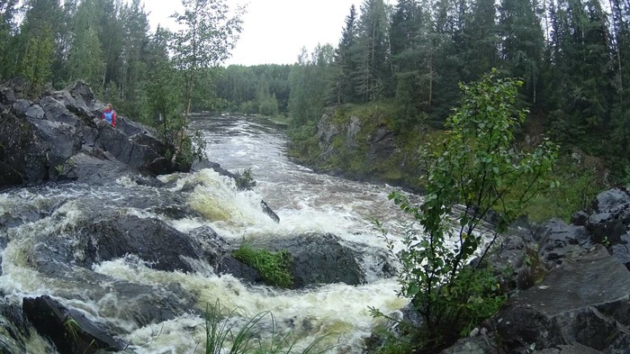 Улитки! Вся палатка была в улитках. Благо они не нашли где вход и ютились только на крыше. Кое как отчистив палатку (ни одна улитка не пострадала!) и побродив вдоль озера мы вернулись в Гирвас. Вот пожалуй именно с этого места я и почувствовал заповедную красоту Карелии. Потухший вулкал в Гирвасе словно возвращает тебя в детство. Ты чувствуюешь неподдельный интерес к этому массивному чуду природы. Хочешь и исследуешь его. Чувствуешь величие природы, ее монументальную мощь. Ну и просто полазить по каменюкам, как же это приятно. Пока мы не излазили его поперек, дальше ехать мы не могли. Утолив своих внутренних Индианов Джонс, двинулись на водопад Кивач.Честно говоря когда мне говорят водопад, я представляю(представлял) себе нечто такое грандиозное. Такая водная мощь льющая с небес, вспенивающая воду и грохочующая словно сотня слонов. Брызги летящие во все стороны и бестящие словно драгоценные кристаллы...Так вот, Кивач...3 порога, ну бурлюкает там, ну подойдёшь к парапету может что то и брызнет. Красиво, но масштаб меня немного разочаровал. Зато там есть дендрологический парк, любителям уверен понравится. Вход на Кивач платный.