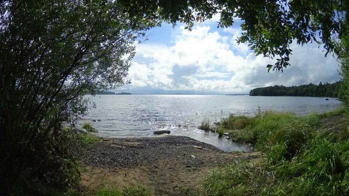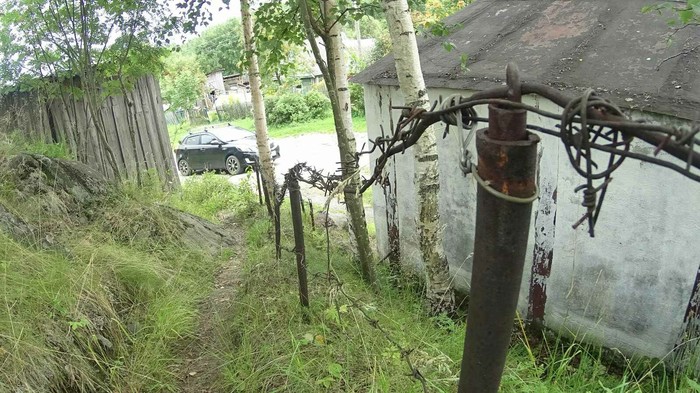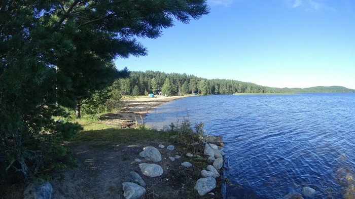 Следующая остановка, место ночёвки за п.Гирвас Кондопожского района. В дороге влил дождь и мы долго не могли найти отворот на грунтовку, а когда нашли приехали под шлагбаум. В итоге нашли место на берегу озера с гаражами. Разбили под дождем палатку и по стандарту. Ужин, рюмашку и спать.