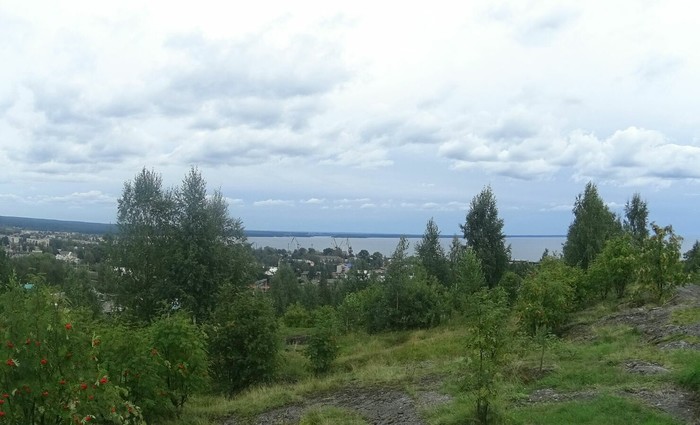 Двигаясь дальше через Медвежьегорск, в приложении мапсми мы увидели что там есть обзорная площадка и решили заехать туда. Сие чудо приложение привело нас на какой то отшиб, не то в гаражи, не то в сараи. Обзорная площадка оказалась пригорком с какой то шахтой. Ну раз приехали мы вскарабкались наверх под вой собак. Вид был шикарен, разбитая дорога, шахта с мусором и продуктами жизнедеятельности сразу забылись. Насмотревшись мы спустились и под тот же вой, прыгнув в машину помчались дальше.