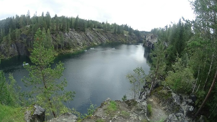 Собрали палатку и рванули в Мраморный каньон, благо остановись прям рядом, ехали не долго. Мраморный каньон это воистину жемчужина Карелии, на него смело стоит потратить день. Тут и каньон, где можно покататься на лодочках, пролететь на тарзанке над каньоном, прыгнуть на тарзанке в каньон, да и просто погулять и наслаждаться видами воистину прелестно. Целый день мы там гуляли и охали, смотрели пейзажи, забирались на камни, спускались в шахту и просто замечательно проводили время. Поверьте в этот день больше ничего вас так не впечатлит, поэтому даже не думайте распыляться на что т кроме Мраморного каньона.
