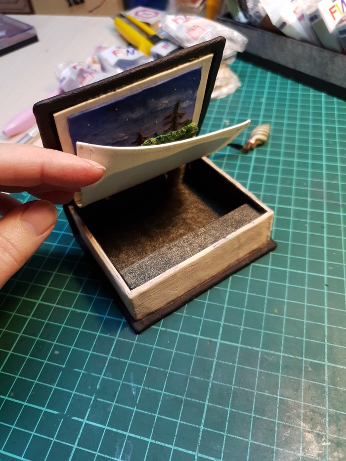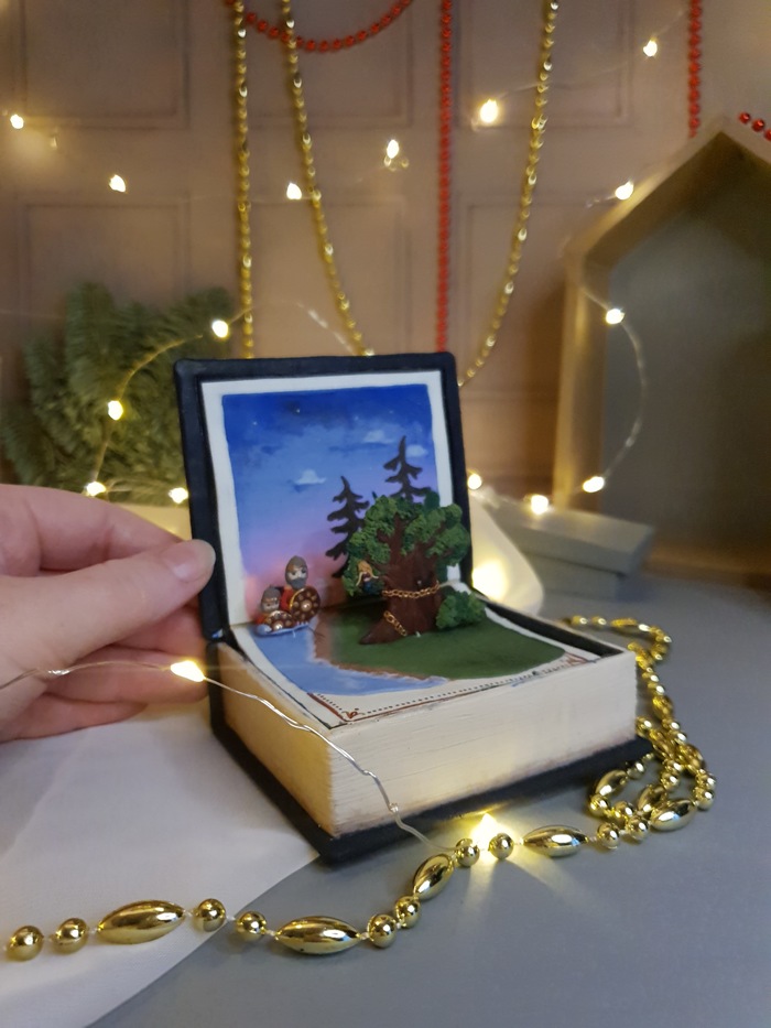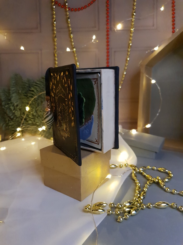Страницы легко сгибаются, плюс глины! Есть место для хранения, всё таки это сюрпризница. Возможно немного мрачная для ёлки.)) Можно использовать и как шкатулку, поставить среди книжек.)