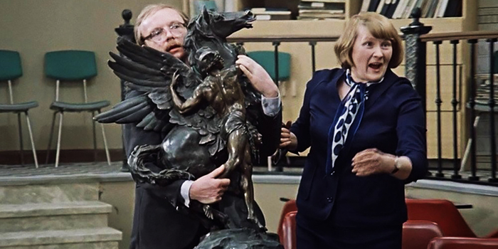 Сначала Рязанов с Брагинским написали пьесу "Сослуживцы". Написана она была за 22 дня с целью заработать. Пьесу взяли для постановки сотни театров страны. Авторы получали свои гонорары и были довольны. Пока Рязанов не увидел телеспектакль по этой пьесе. Результат так не понравился Рязанову, что он сам снял фильм. Ключевых персонажей в обеих картинах всего 6, сюжет и текст практически совпадают. И даже подарочная лошадь, скоторой таскается Новосельцев перекочевали из одной картины в другую. Зато сам Новосельцев в исполнении Мягкова ничем не напоминает своего предшественника. Да и секретарша Верочка из классической красавицы превратилась в энергичную забавную дамочку.