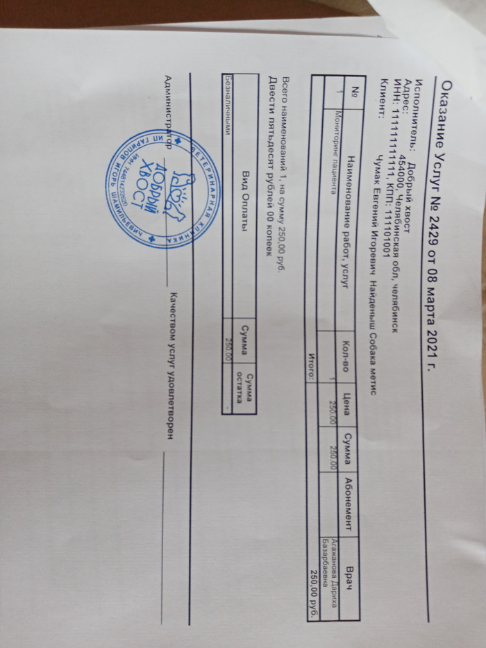 Решили с женой увезти его в клинику "добрый хвост", челябинцы наверно слышали про них. Заполнили бумаги, оплатили ему сутку пребывания.