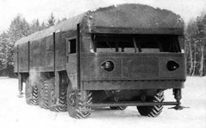 Ведущих мостов у машины было четыре. Кабина водителя была небольшая, но в ней спокойно могло разместиться 2 человека. Сесть в нее была возможность только с одной стороны, с левой. Весило это сооружение достаточно много – до сорока тонн. В длину бункер был одиннадцать метров. При этом, машина могла развить скорость до 60 километров в час.