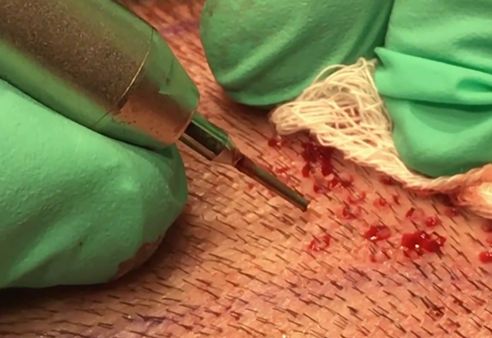 2) Изъятие графтов при помощи панча. На фотографии видно, какой будет донорская зона сразу после операции