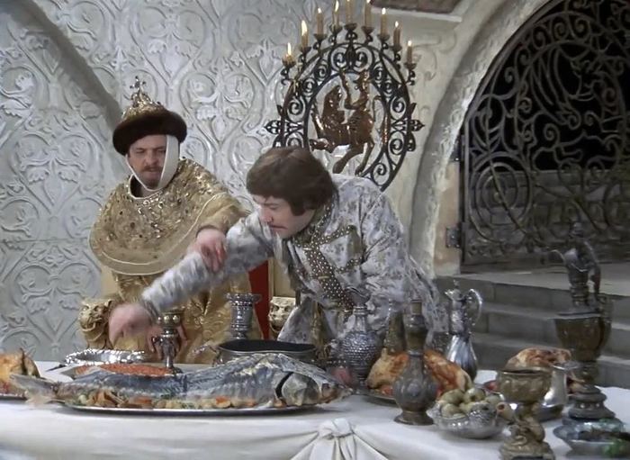 Каким-то образом, в фильме «Иван Васильевич меняет профессию» звучит фраза несколько иная фраза, чем ранее известная широкой публике — «Заморская икра! Баклажанная!».