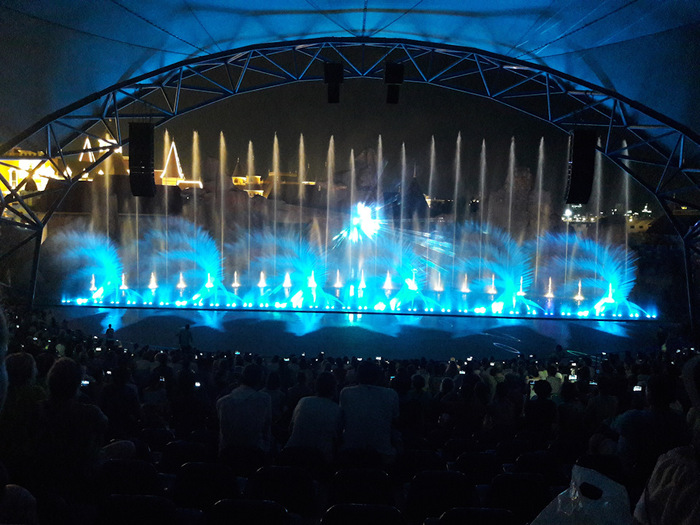 Погуляли по тёмному парку и к 19:00 пошли смотреть на шоу фонтанов.