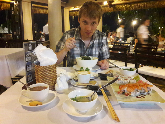 Суп не ел — какая сила? Простецкий вкусный и сытный, падло, суп. После него роллы шли медленно…