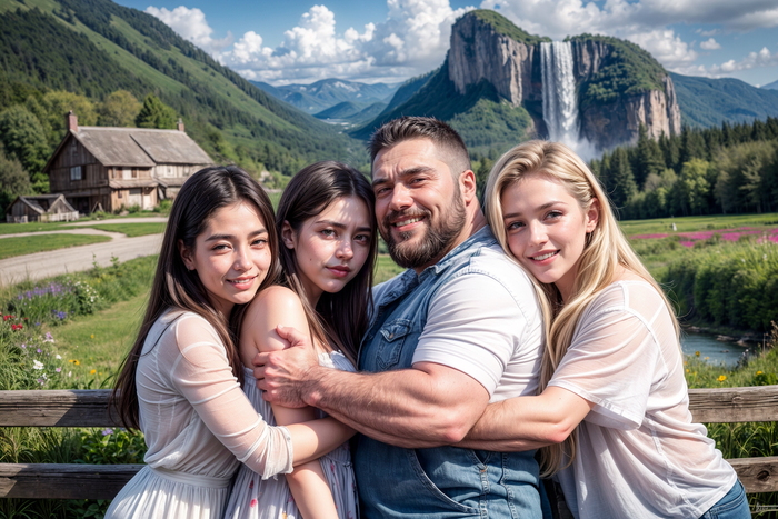Всё ещё неестественно, кукольность никуда не делась, даже несмотря на то, что я немного обработал кожу. Да и фон какой-то… ну, никакой. В общем, мне не хватило идеи. Что с этим делать, я придумал не сразу, а поэтому решил попробовать воспроизвести сцену из конца книги, с другим сгенерированным изображением.
