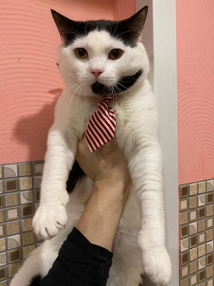 Рома идеален во всем! Единственное, что других животных он не очень любит. Рома главный, брутальный и очень деловой, у него даже есть галстук!