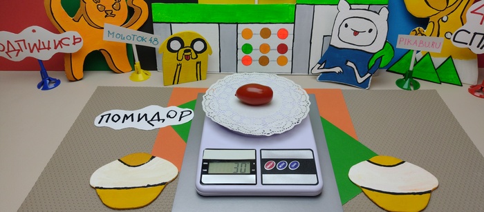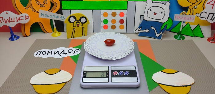 Теперь взвешиваем самый большой помидор он весит целых 30 грамм