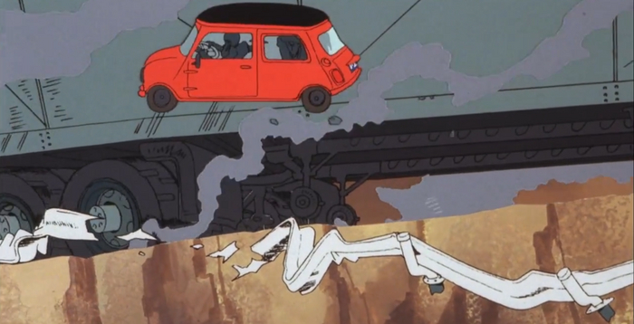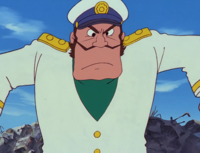 Интересно, что Дзенигата здесь чем-то напоминает капитана Дайса из сериала Миядзаки Конан — мальчик из будущего, который он снял за год до фильма.