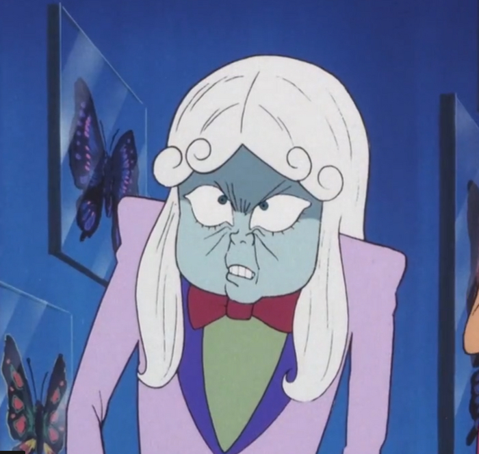 Злодей — абсолютное чудовище, психопат, который даже несмотря на свою слегка курьезную внешность создает ощущение могущества, если даже не полубога, настоящей угрозы для Люпена.