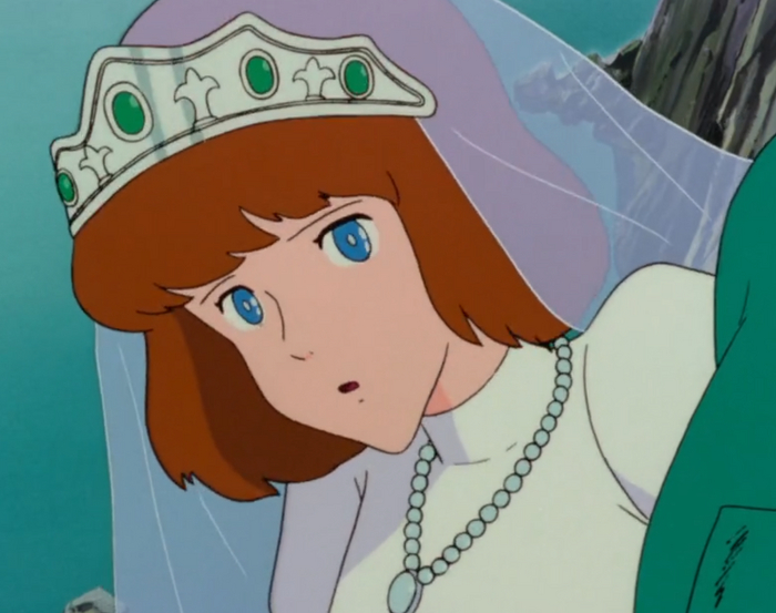 Люпен тут изменился, причем достаточно серьезно. Он стал взрослее и остепенился. Его психологические качели резко махнули в сторону спокойствия, уравновешенности и золотого сердечка, которое он всегда с собой носит, но здесь оно проявляется особо. Изнасилования? Что вы, этот Люпен даже к Фудзико не пристает, а уж к Клариссе он относится дружески или даже отечески. Разве что с официанткой флиртует. Планы придумывает не чересчур сложные, а простые и надежные. Вместо выпендрежного Мерседеса SSK — простой, крепкий и надежный Фиат 500. Да и вообще стал намного мягче и романтичнее. По факту он не совершает ни одного негативного поступка — краденые бумаги оказались фальшивыми, а незаконное пересечение границы и проникновение в замок — было для спасения невесты и разгадки тайны фальшивых денег. Это контрастирует с его антигероическим образом из других частей, но ты веришь, что это тот же Люпен, только остепенившийся и раскрывший больше свое золотое сердце. Наверное, в этом некоторый неуспех Заговора клана Фума и 3Д-фильма, в которых тоже Люпена сделали чуть добрее. Дело ведь не в том, что он стал добрее в душе — в душе у него всегда было золотое сердце (кроме манги, естественно). Дело в том, что он именно повзрослел и стал более искренним, стал больше раскрывать свою душу.