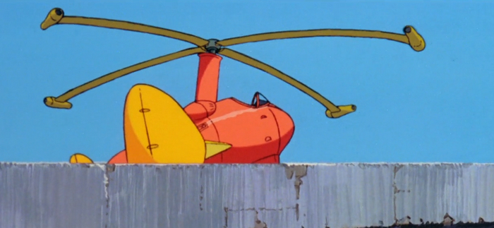 Ах да, поскольку это Миядзаки, устаревший летательный аппарат должен быть. Не пропеллерный, но что уж было.