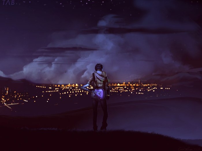 Я выкинул бутылку и вцепился в гитару Алана. Тот не желал её отпускать. Мы остались на крыше вдвоём. Похоже, он не знал, как от меня избавиться.