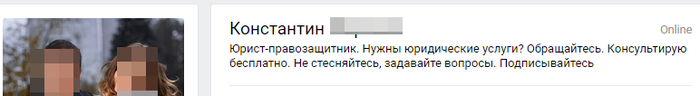 Последнее время стал меня доставать @demoncoolO7, гадости всякие пишет, бредовые разоблачения, оскорбления, как муха назойливая. Прям не дает ему покоя, что я, иногда, указываю, что консультирую в ВК людей бесплатно. Прям горит у него от этого. И от моих постов, типа оформлены не по-юридически, профессионал так не пишет.