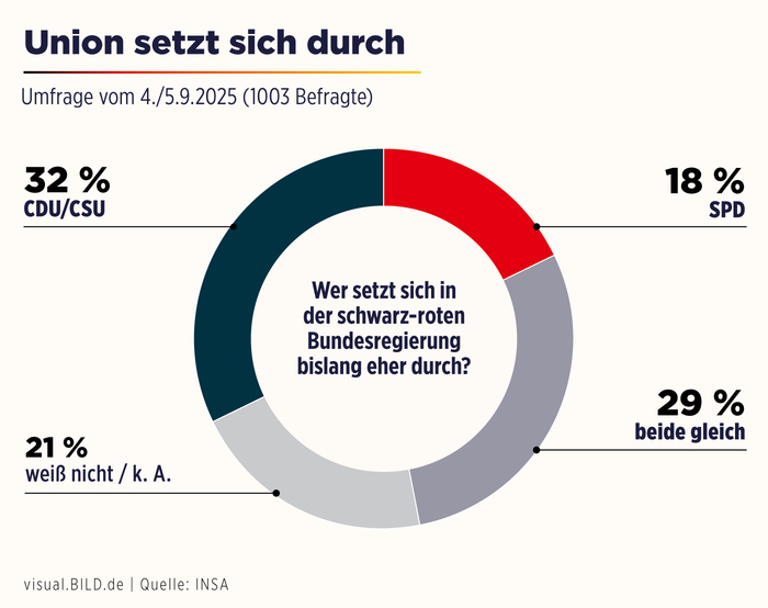 Большинство жителей ФРГ недовольны деятельностью правительства страны (62%) и канцлера (59%). Лишь 27% участников исследования удовлетворены работой правительства, а 29% опрошенных довольны канцлером. Эти показатели практически не изменялись на протяжении всего августа после резкого падения рейтингов в июле.