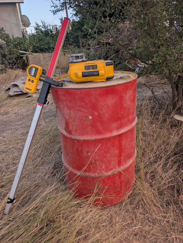 Предстоит освоить ротационный нивелир. На знакомство с этим чудо-прибором ушло минут 15. Сложности возникнуть не должны.