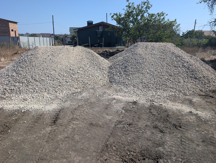 Следующая задача на повестке дня - найти подешевле щебень на отсыпку подушки и подготовку подъезда к дому. Это нужно для того, чтоб работа не зависела от погодных условий, плюс, была чистая и аккуратная стройка. Знаем, что такое месить грязь, после каждого дождя)