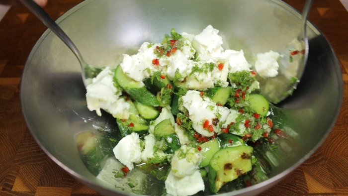 Салат с жареными огурцами