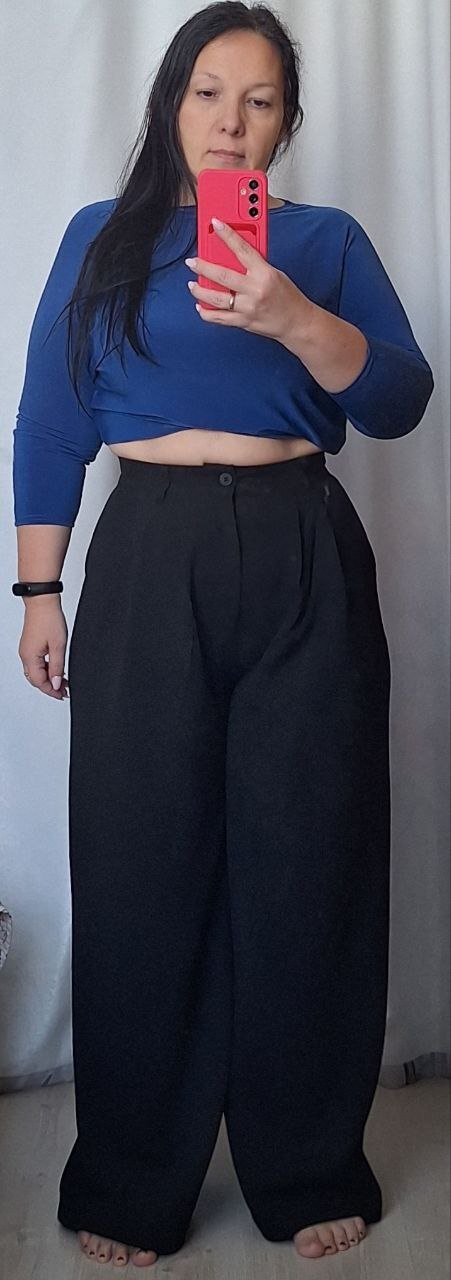 Я купила классические брюки, чтоб до них постройнеть и вот я их надела и застегнула...они даже с биркой ещё, я думала вдруг не смогу до них похудеть, потом продам 😜😁😊