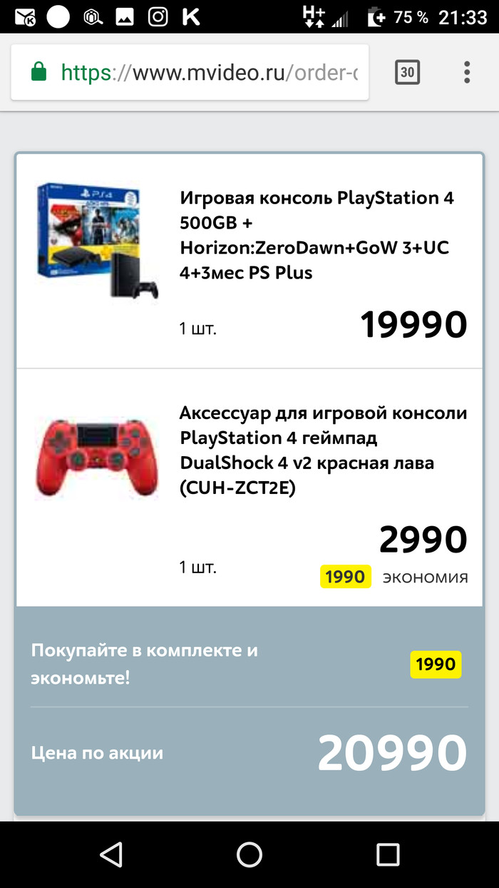 ____В пятницу днём мы через интернет магазин оплатили приставку и геймпад (по акции).