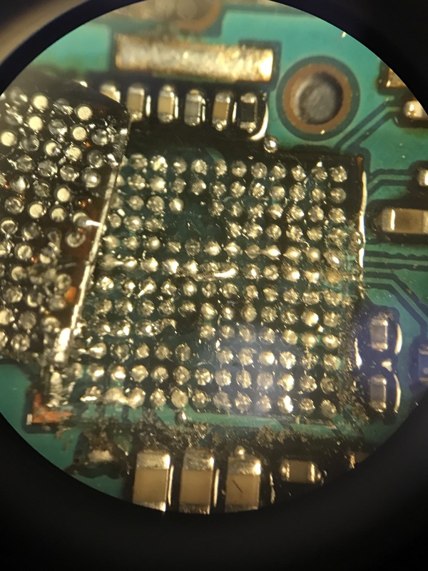 Визуально микруха целая, но судя по всему его уже пытались реанимировать, ибо защитного экрана над микрухой нет.