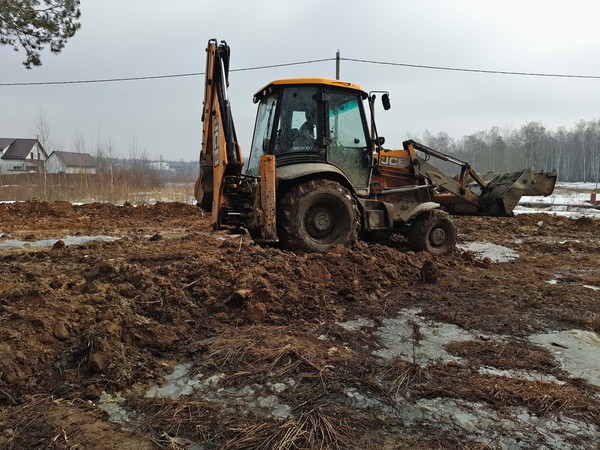 Грунт от обратной засыпки траншей осыпался, т.к. копали, закладывали трубы и закапывали еще зимой, так же ранее упомянутые приямки у фасадной части участка необходимо было засыпать, на тыльной стороне решил оставить кусочек собственного леса, природный рельеф был не тронут. Было нанята техника около 10 камазов боя мелкой фракции и разного сыпучего грунта. в течении двух дней техника гудела не переставая у меня перед носом. Из бюджета вытекло еще в рай-не 50-ти тысяч.