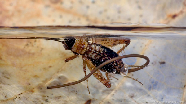 Эти черви — паразиты сверчков и стрекоз. Сперва насекомое пожирает личинку червя, которая затем начинает развиваться внутри него. Ничего особенного на первый взгляд. Однако последняя стадия развития червя происходит в воде, около которой сверчки не водятся – значит нужно заставить сверчка пойти к воде. Манипулируя центральной нервной системой сверчка, червь заставляет его прыгать в ближайший источник воды, где насекомое безнадежно тонет, позволяя червю окончательно развиться и начать размножаться.