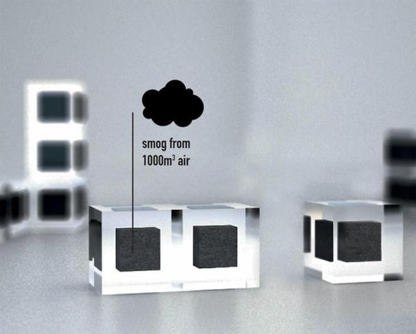 В дополнение, башня будет использовать отфильтрованные частицы смога, чтобы создавать украшения, сжимая их в кубики. Каждый такой кубик содержит смог, собранный из 1000 куб. м воздуха. По оценкам Рузегэарда, в областях с серьезным загрязнением воздуха, "Башня Чистого Воздуха" сможет производить более 3500 кубов в день.