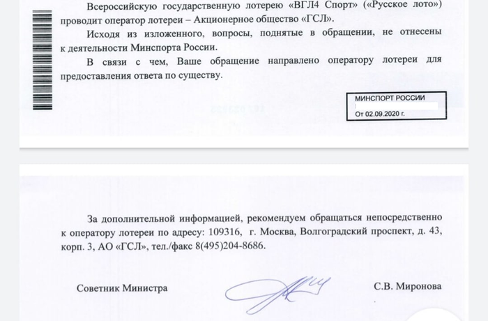 Писал я однажды организатору лотереи , Министерству спорта РФ, они сказали что эти вопросы не к ним а к оператору АО ГСЛ . Писал я в ГСЛ , а они молчат , частная компания не обязана отвечать . Так как же сдвинуть ситуацию с этой точки ?