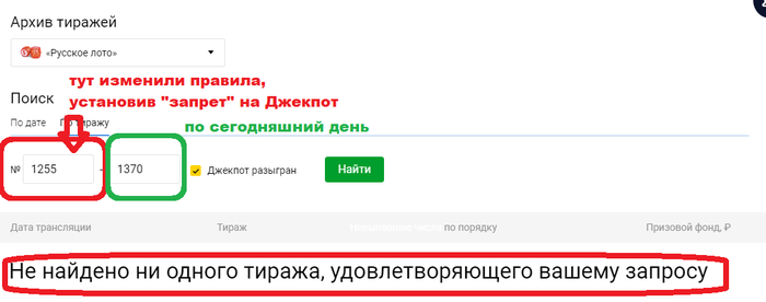 Компании Столото видимо не понравилось отдавать выигранные деньги простым людям , и они изменили принцип розыгрыша(правила) тем самым установив "запрет" на розыгрыш Джекпота.