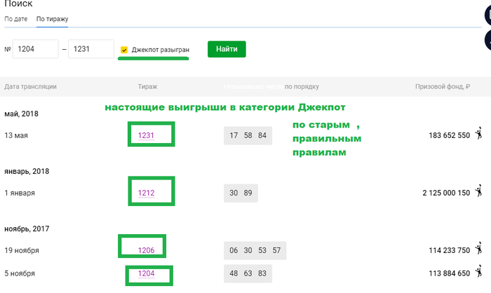 Шансы на выигрыш Джекпота равны или нулю или 1 к 22 квадриллионам. Оба этих шанса не реализовались и не реализуются никогда. Столото обманывает всех своих игроков не договаривая, не говоря правды про вероятность выигрыша, про количество напечатанных ими билетов , увиливая от ответа именно касаемо лотереи РЛ. Нигде ни на официальном сайте , ни в рекламе нет информации о вероятности выигрыша Джекпота , про который они так громко кричат . Нельзя "одной рукой" зазывать людей выиграть Джекпот, а "другой рукой" устанавливать запрет на розыгрыш Джекпота, и снимать запрет его только тогда, когда захочется какому то одному человеку.