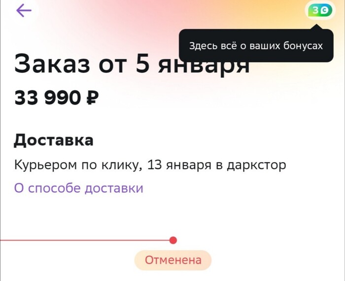 Где то ещё был текст "нам очень жаль, мы уже запустили процедуру возврата средств" хотя я ставил галку на какой то "гарантии доставки", которая, видимо, ничего абсолютно не значит. Никто меня не спрашивал хочу ли я вернуть деньги или получить товар. Просто поставили перед фактом:" мы ваш заказ взяли, оплату получили, подтвердили, но через 4 дня передумали, идите вы нафиг". При этом если нажать на сам товар, то все окей, продаётся у того же продавца тот же самый товар. Только бонусов уже в 5 раз меньше.