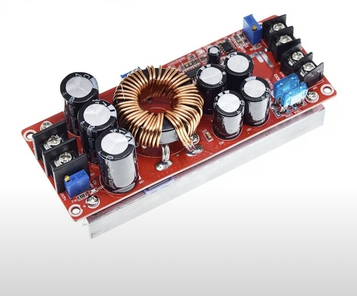 3. Питание взял 6х18650 3000mah (ёмкость маленькая но можно добавить место есть) получилось 22 Вольта а для питания усилителя что бы он отдал свою заявку нужно 50 Вольт поэтому поставил повышающий dc-dc модуль на 1200w.