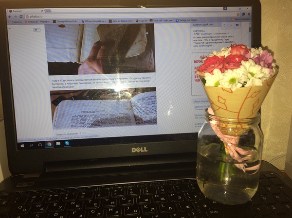 А этот шикарный букет дарили каждой входящей девушке с утра в холле. (Баночка на 250 грамм)