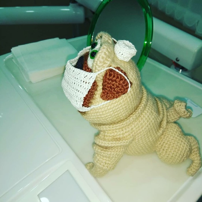 129 Jekina Рукодельники Мопс-стоматолог 7 лет назад вязался в подарок на октрытие стоматологического кабинета. Показать полностью 2 [моё] Вязание крючком Мопс Стоматолог Амигуруми Подарки