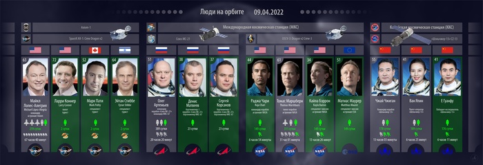 На орбите 14 человек, 11 на МКС и 3 на китайской станции. Такая ситуация станет привычной на ближайшие пять лет, с периодическим увеличением до 17 человек (при одновременной пересменке китайского и американского экипажа). К концу десятилетия возможно периодическое увеличение до 20-25 человек вне Земли (если начнутся лунные американские экспедиции и экспедиции посещения на новую российскую станцию). Есть еще вероятность (но это в 30-х годах) «частных» полетов на частные орбитальные станции и в свободном полете. Есть еще полет пилотируемого Starship c японским миллиардером (который, по слухам, уже оплатил несколько сот миллионов SpaceX) в компании со странными людьми. Но всерьез рассчитывать на это в ближайшие пять-семь лет не стоит.