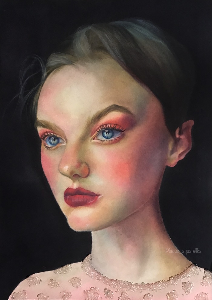 Портрет ещё не закончен и должен быть немного другим, но пока неизвестно смогу ли я его завершить как планировала и сколько займет это времени, поэтому покажу пока такой вариант.