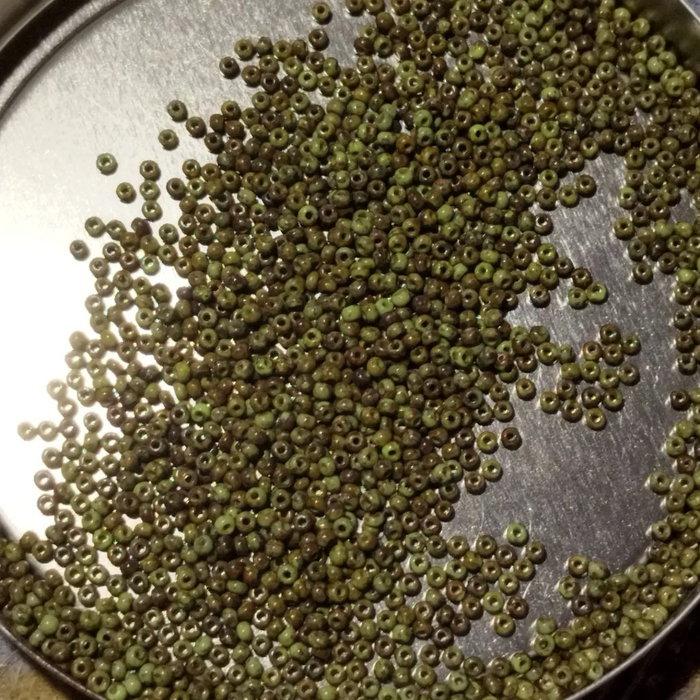 Из разговора с продавщицей, я узнала немного печальную новость, что от партии к партии выраженность узора может отличаться (это заметно на оливковом бисере). Тоже связано с особенностями материала.