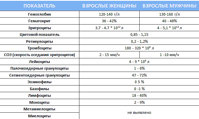 ОАК: референсные значения (норма) для взрослых старше 18 лет